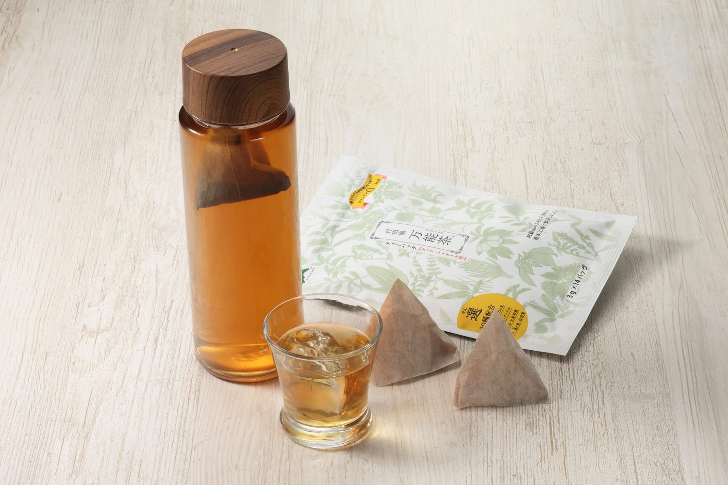 カップに入れてかき混ぜるだけ、またはマイボトルに入れて振るだけで、簡単に美味しい万能茶が作れます。お出かけ時やお仕事中の水分補給にも便利です。