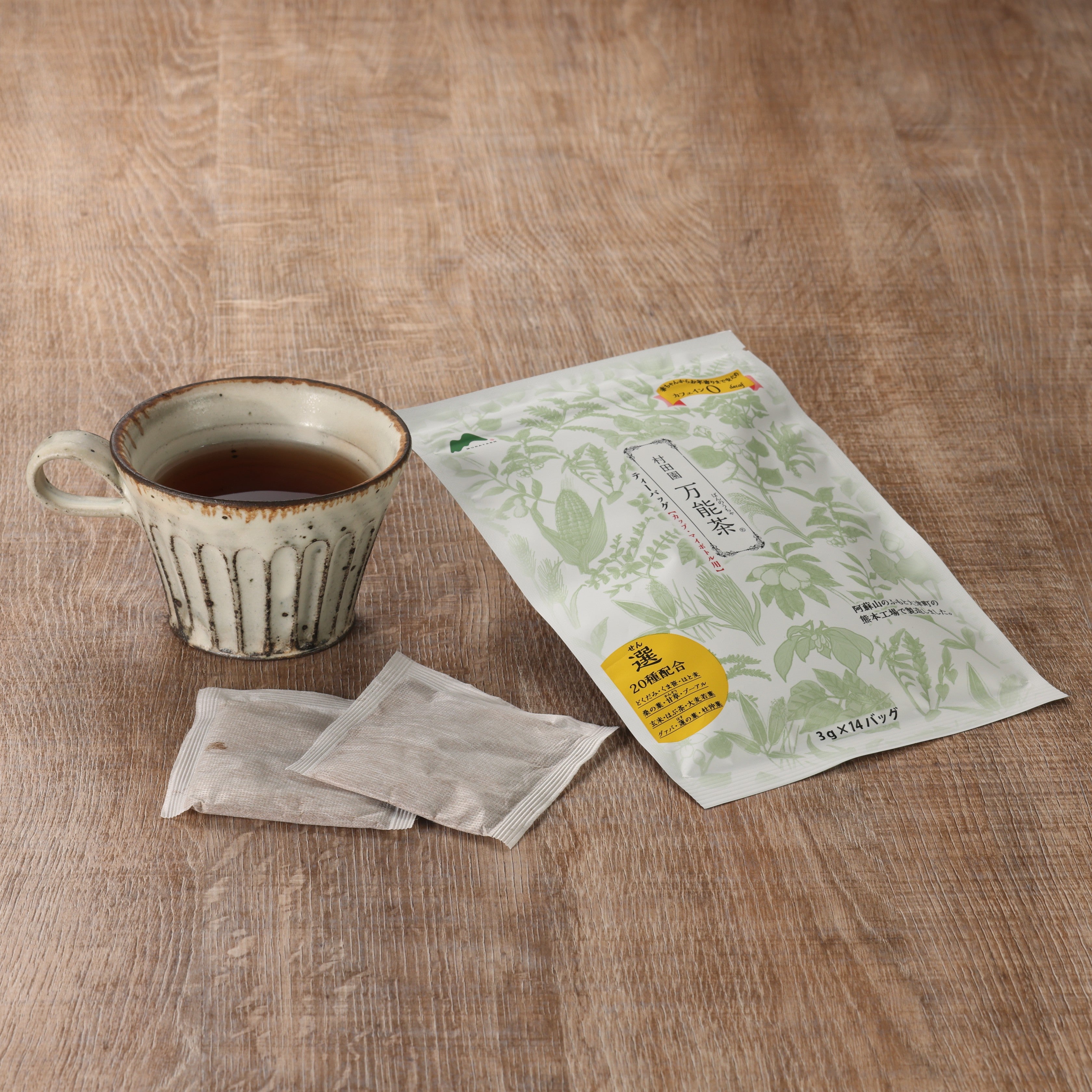 煮出す手間をかけず、簡単に美味しい万能茶を作ることができるティーバッグです。1包で1ℓできますので、手間がかからずとても経済的です。