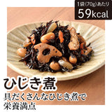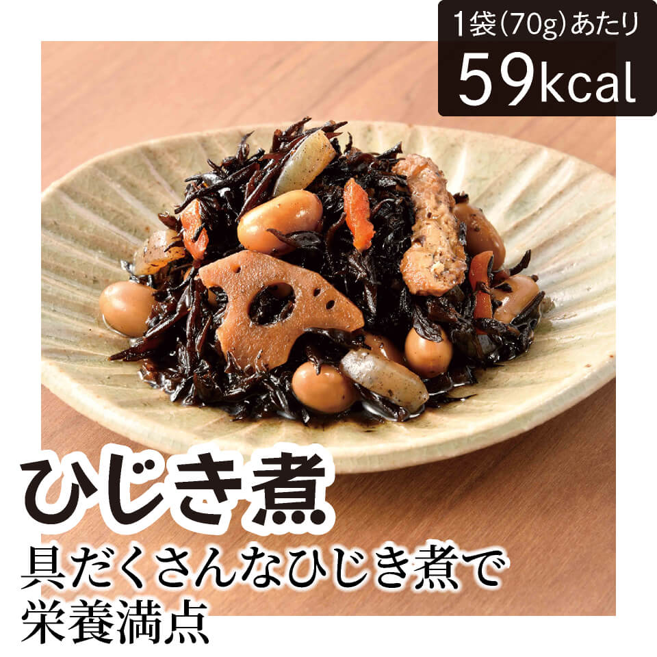 ひじき(中国産)、大豆、砂糖、れんこん、しょうゆ、こんにゃく、人参、油揚げ、植物油、みりん、食塩、鰹節エキス、