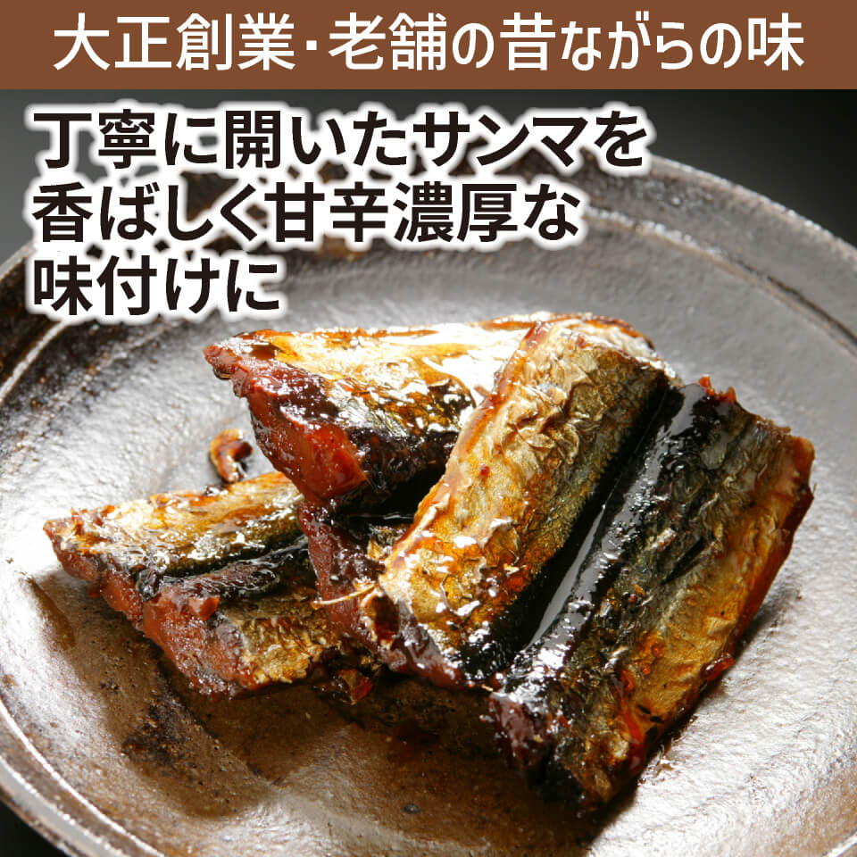 サンマ、砂糖、しょうゆ(大豆・小麦を含む)、水あめ、還元水あめ、寒天/甘味料(ソルビット)、調味料(アミノ酸等)、酸味料、増粘多糖類