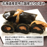 ぶり(国産)、昆布(北海道)、砂糖、干瓢、醤油、味醂、食塩(一部に小麦・大豆を含む)