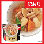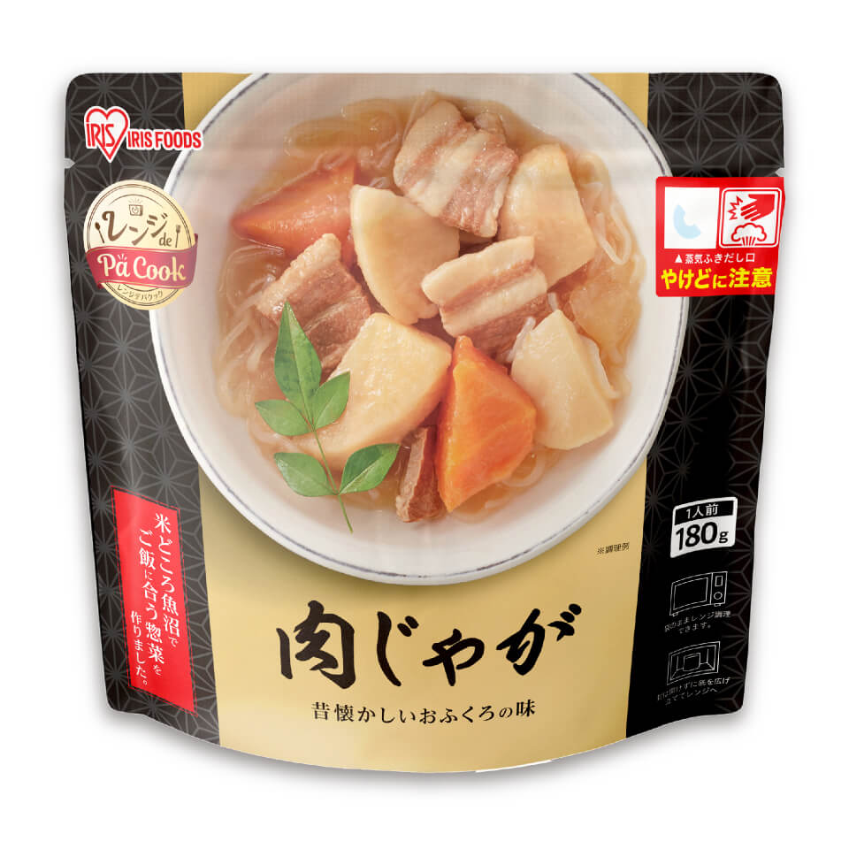 野菜(じゃが芋(国産)、人参、玉ねぎ)、こんにゃく、豚肉、醤油(小麦・大豆を含む)、砂糖、ぶどう糖果糖液糖、みりん、清酒、かつお節エキス、食塩/調味料(アミノ酸等)、酸化防止剤(ビタミンC)