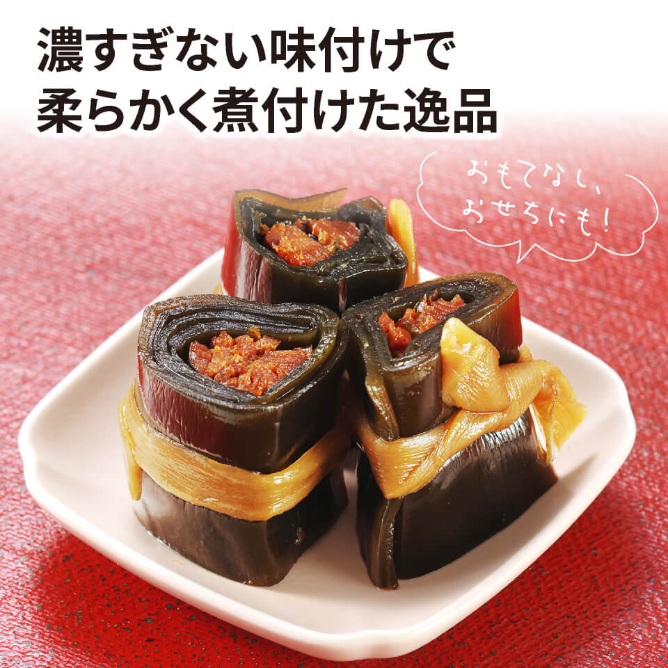 昆布巻(昆布(中国)、にしん、干瓢)、還元水飴、砂糖、発酵調味液、醤油(小麦・大豆を含む)、食塩、野菜エキス