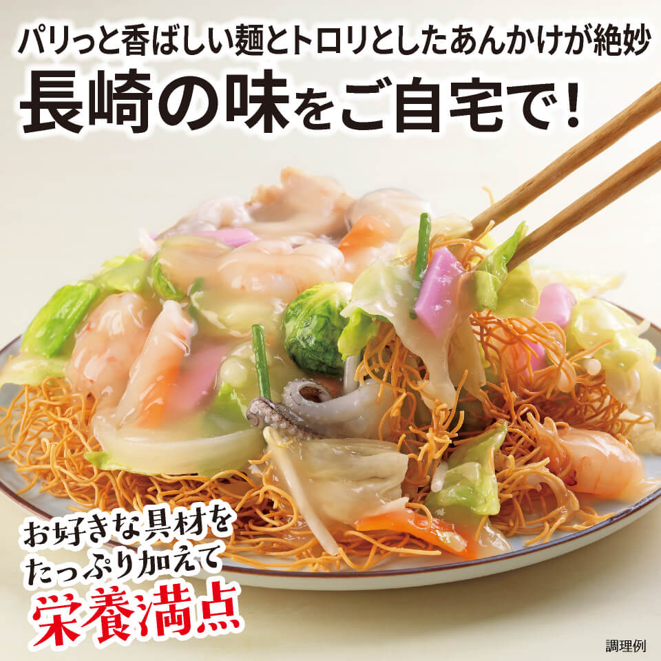 サクサクと歯触りのよい細麺に豚骨ベースのスープが特徴。優しい旨味とコクが豊かな長崎の味。
