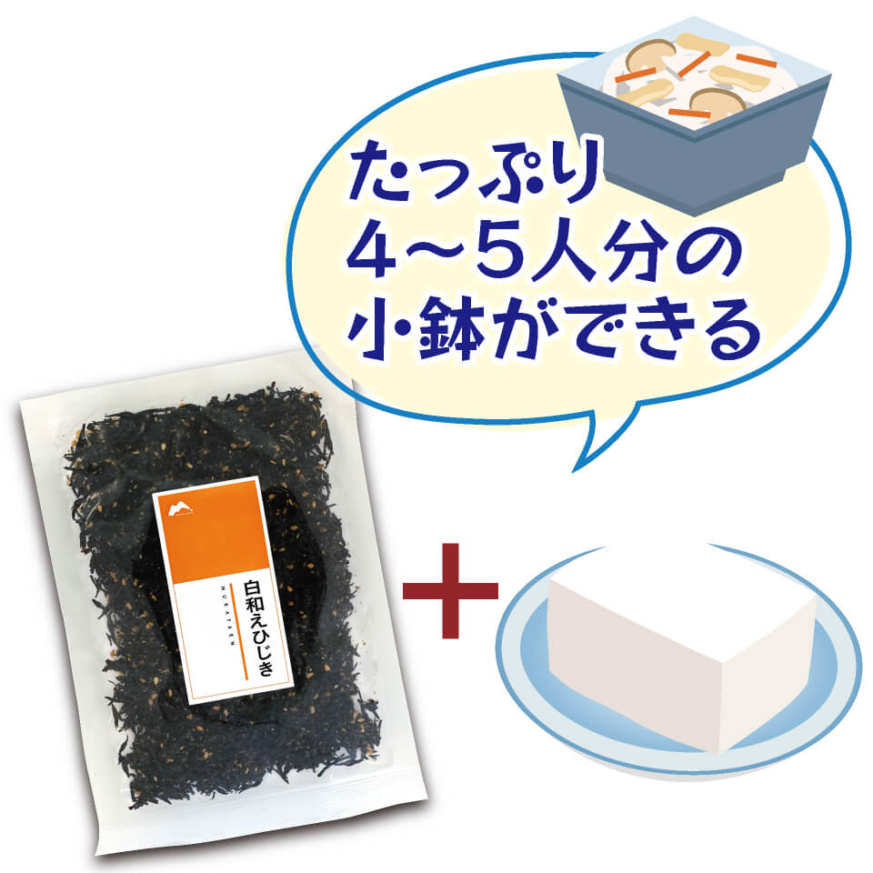 軽く水気を切った豆腐(1丁)と「白和えひじき」1袋をボウルに入れ、スプーンや箸で豆腐をつぶしながらよく混ぜ合わせます。