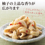 干し大根(国産)、昆布(国産)、柚子皮(国産)、ごま、唐辛子、漬け原材料(果糖ぶどう糖液糖、醸造酢、食塩、柚子果汁)/調味料(アミノ酸等)、香料、酒精、(一部にごまを含む)