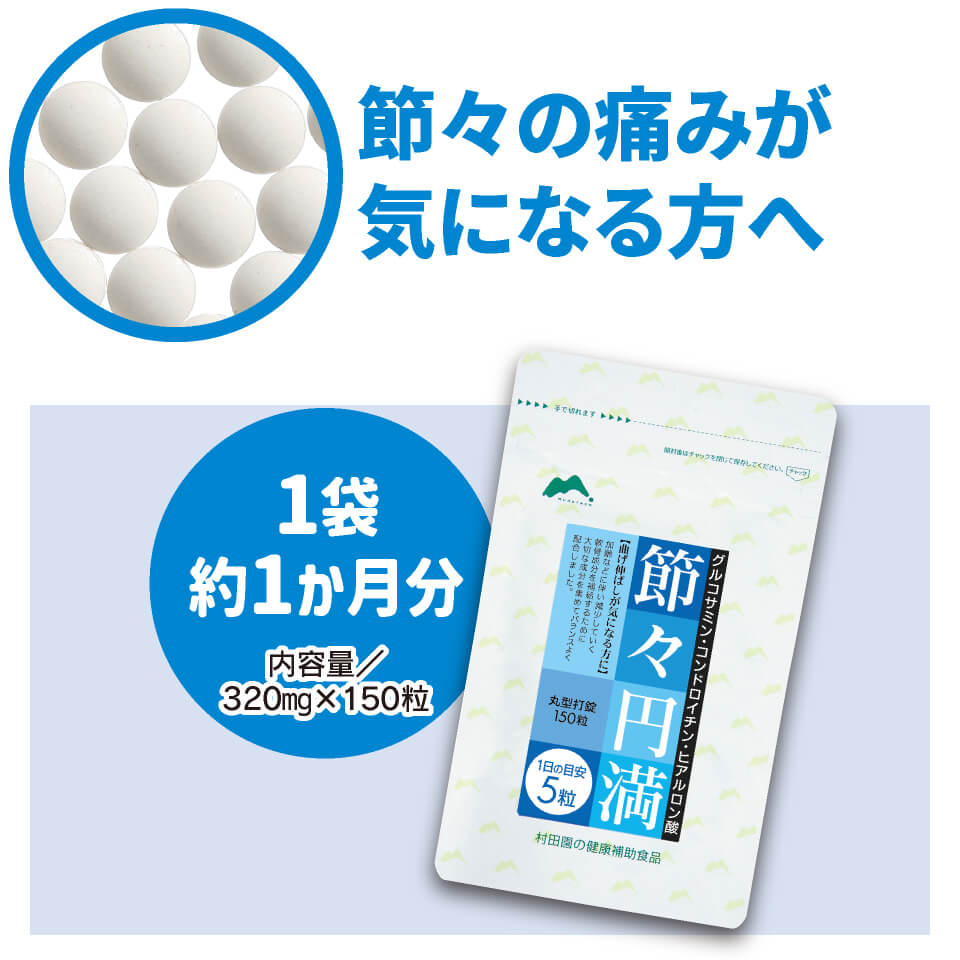 グルコサミン、コンドロイチン、Ⅱ型コラーゲン、ヒアルロン酸、ショウガ末配合。
