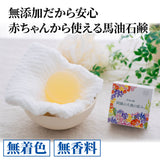 昔ながらの手作り製法。馬油天然油脂が持つ天然成分、働きを最大限にいかすことができる「釜炊きケン化法」で一つ一つ丁寧に作りました。