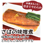 さば(ノルウェー産)、味噌(大豆を含む)、砂糖、果糖ぶどう糖液糖、みりん、還元水飴、発酵調味料、菜種油、澱粉、醸造酢、酵母エキス、あご粉末、昆布エキス