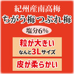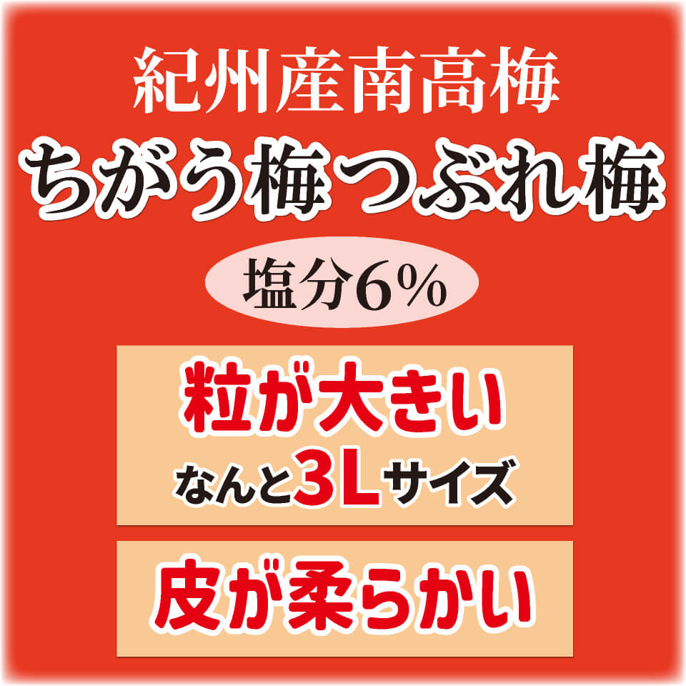 梅、漬け原材料[還元水飴、食塩、しそ液、たん白加水分解物、醸造酢]/酒精、野菜色素、甘味料(スクラロース)、ビタミンB1